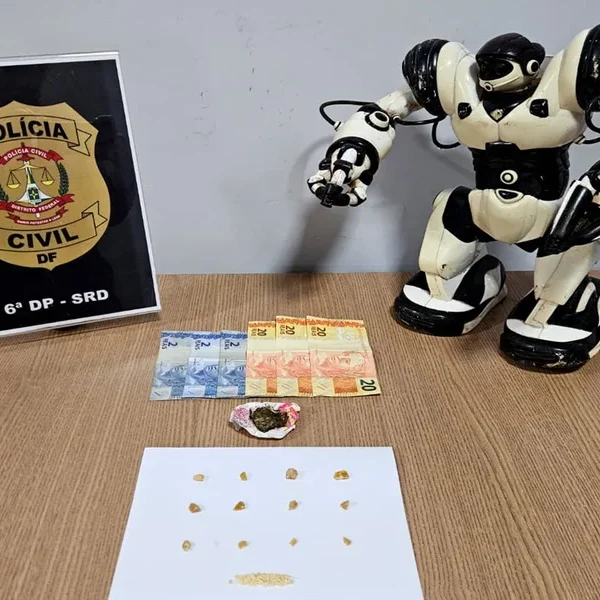 Dez pedras de crack e duas porções de maconha foram encontradas escondidas embaixo de um robô…