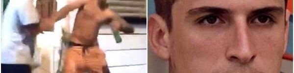 Nele, podemos ver o arquiteto arremessando uma garrafa de vidro em direção ao homem que o agride.