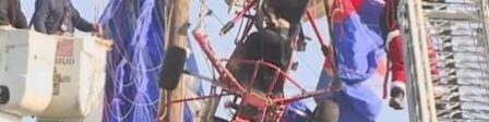 O Papai Noel ficou cerca de uma hora preso nos fios elétricos e foi encaminhado ao hospital.
