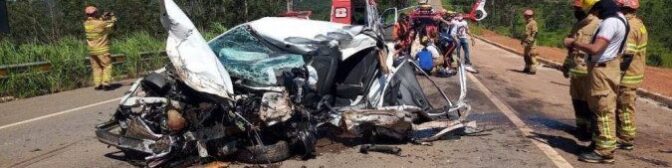 Um acidente envolvendo três veículos na manhã deste sábado (23/1), próximo à entrada do Setor Rural Nova Betânia, em São Sebastião, provocou a morte de uma jovem de 26 anos. O veículo no qual a motorista estava colidiu de frente com um caminhão e, depois, com outro carro. Ela foi lançada do automóvel após a segunda colisão e não resistiu aos ferimentos.