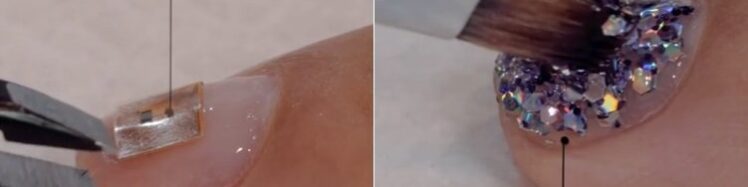 O microchip implantado na unha fica escondido com a aplicação de esmaltes e glitter.