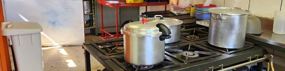 Além disso, botijões de gás são estocados perto de um fogão industrial, o que coloca em risco a saúde e a segurança de alunos e professores.