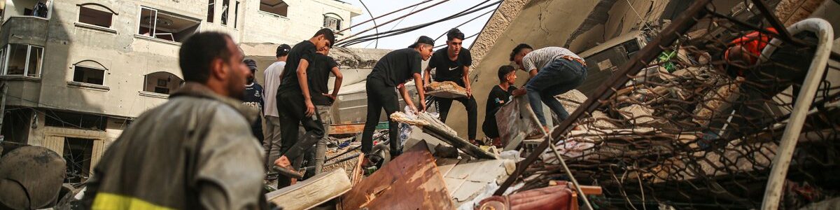 Os esforços de busca e resgate continuam entre os escombros de edifícios destruídos após ataques israelenses na Cidade de Gaza