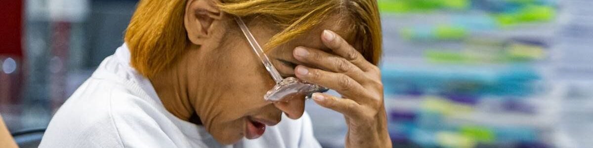 A ex-deputada e cantora gospel Flordelis, acusada de matar o marido, durante julgamento. Ela usa cabelo curto e loiro, moletom e aparece sentada com a mão na cabeça e olhos fechados – Metrópoles