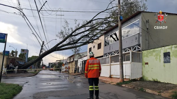 De acordo com o Corpo de Bombeiros Militar do Distrito Federal (CBMDF), quando as equipes chegaram no local, encontraram a árvore de grande porte caída sobre uma residência.