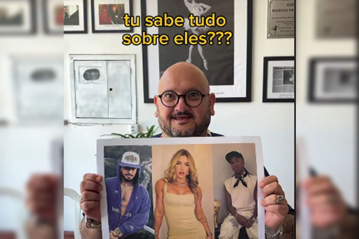 No vídeo, um funcionário segura fotos da influenciadora, do jogador de futebol e do ex-marido de Virginia, Zé Felipe, e questiona “sabe tudo sobre eles?”.