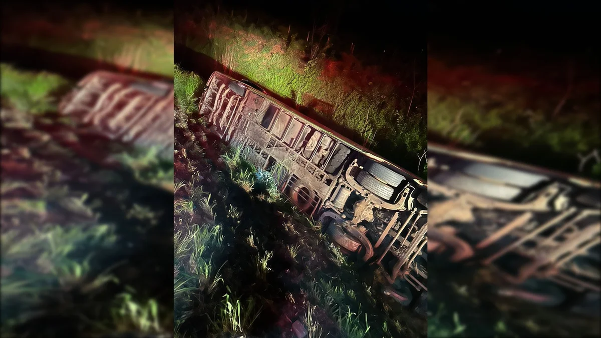 Um ônibus, que transportava 22 passageiros, capotou na noite desta sexta-feira (19/12). O acidente ocorreu no km 25 da BR-060, próximo a Abadiânia (GO), cidade do Entorno do Distrito Federal.