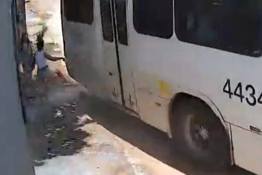 Imagens registradas por câmeras de segurança mostram quando a mulher é atingida na calçada pelo ônibus enquanto o motorista realizava uma curva. No momento, ela estava acompanhada da filha, que carregava uma mochila nas costas.