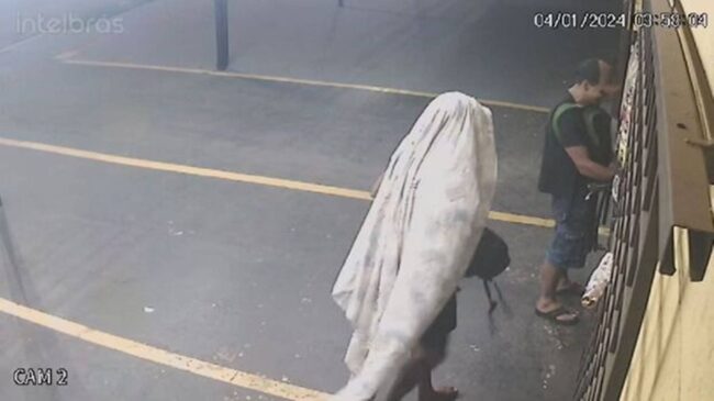 Criminosos que usaram lençol na cabeça para fingirem ser moradores de rua furtaram uma tabacaria no bairro Piratininga, em Campo Grande (MS), na última quinta-feira (4/1). A ação foi registrada por câmeras de segurança. Na semana anterior a esse furto, uma outra loja da empresa, que fica nas Moreninhas, também foi furtada. Fonte: Metrópoles