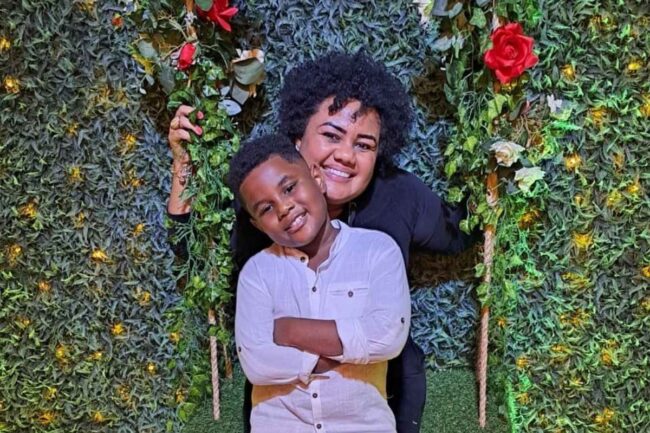 Arthur Antonio, que são negros e sorriem para a foto. Ele está na frente, com os braços cruzados, de camisa de botão branca. Ele está atrás, de camiseta preta – Metrópoles São Paulo – A mãe de um estudante de 9 anos afirma que o filho foi vítima de racismo, com xingamentos de “macaco”, “projeto…