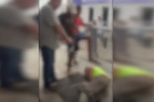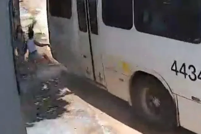 De pé em parada, mulher é atingida e derrubada por rabeira de ônibus. Veja vídeo